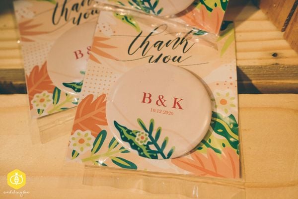 Set quà tặng với những thiết kế đáng yêu hút ánh nhìn sẽ tạo điểm nhấn tuyệt vời cho bàn tiệc của bạn! Ngoài việc sử dụng như món quà lưu niệm ghi dấu lại ngày trọng đại của bạn, chiếc huy hiệu nhỏ xinh này có thể được sử dụng như món đồ trang trí gia đình với những tính năng hữu ích mà bất cứ gia đình nào cũng cần đến: magnet tủ lạnh kiêm dụng cụ mở nắp chai bia.